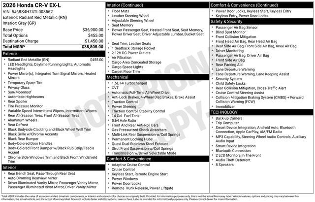 Experience the perfect blend of style, capability, and technology with this 2026 Honda CR-V EX-L. Schedule a test drive today and discover how this exceptional SUV can elevate your driving experience.