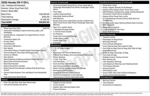 Discover the perfect blend of style, technology, and capability in the 2026 Honda CR-V EX-L. Experience the difference for yourself and schedule a test drive today. We're confident that this exceptional SUV will exceed your expectations and become your trusted companion on the road ahead.