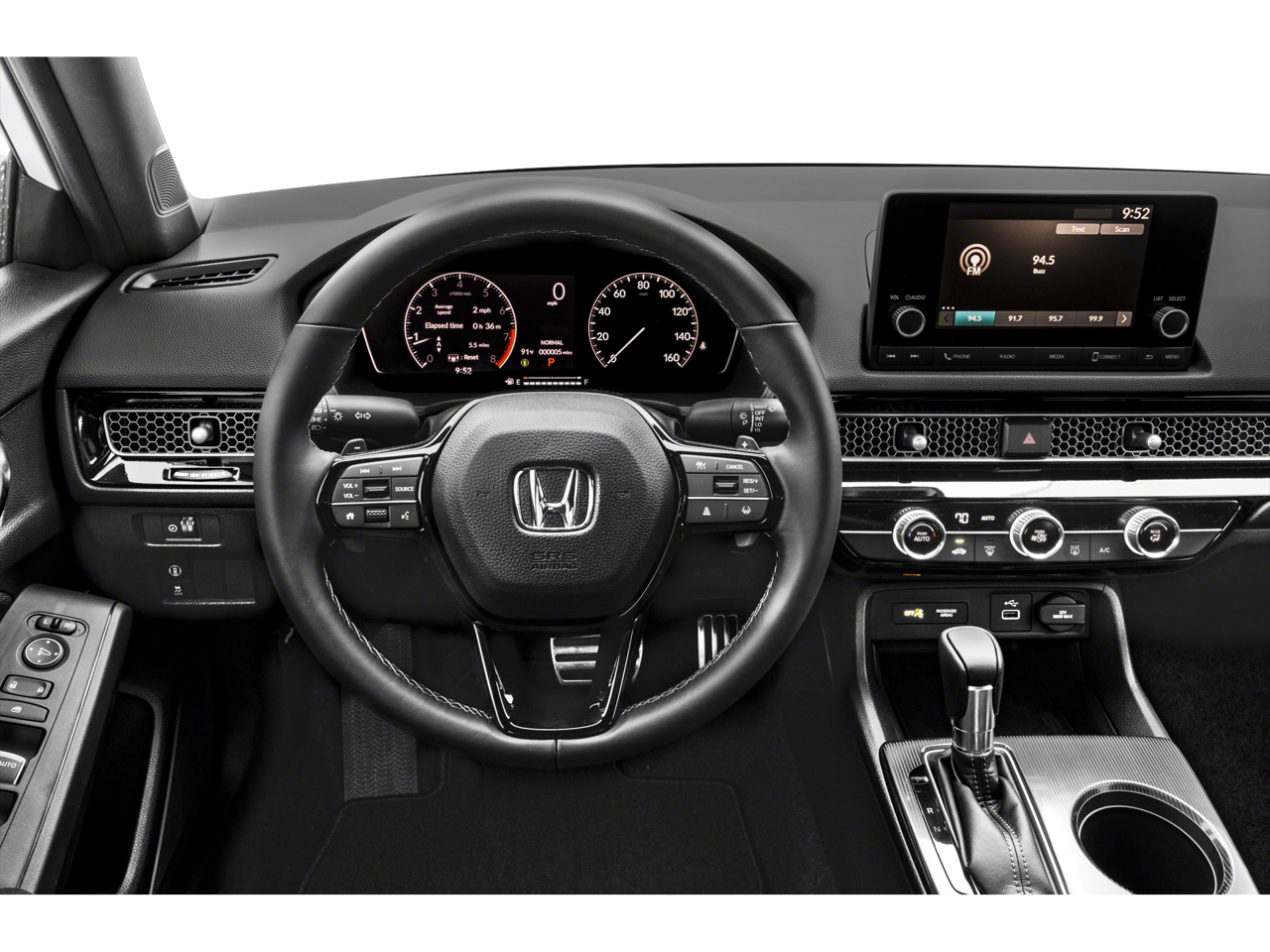 Comfort and convenience are paramount in the 2024 Honda Civic Sport. Automatic climate control, power windows, and remote keyless entry ensure a comfortable ride, while the leather-wrapped steering wheel and shift knob add a touch of sophistication. The 8-speaker sound system and steering wheel-mounted audio controls provide a premium audio experience, keeping you entertained on every journey.